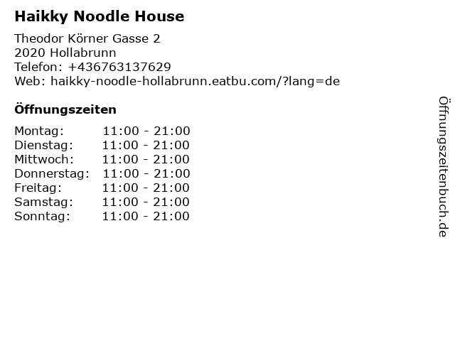 | Öffnungszeiten Haikky Noodle House in Hollabrunn anzeigen | |