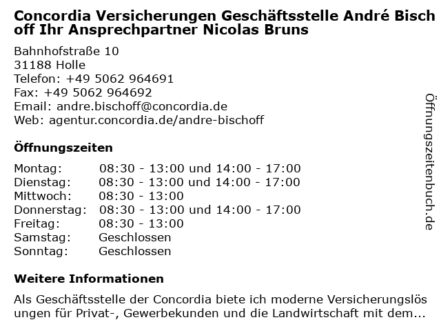 Branchen & Suchbegriffe zu Concordia Versicherungen Geschäftsstelle André Bischoff Ihr Ansprechpartner Nicolas Bruns:andré, ansprechpartner, bischoff, bruns, concordia, geschäftsstelle, ihr, kfz versicherung, nicolas, versicherungen, versicherungsagentur, wohngebäudeversicherung, zahn zusatzversicherung |