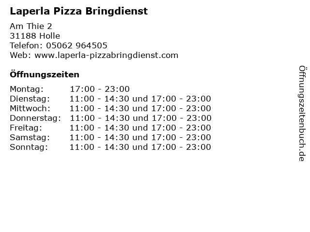 | Öffnungszeiten Laperla Pizza Bringdienst in Holle anzeigen | |