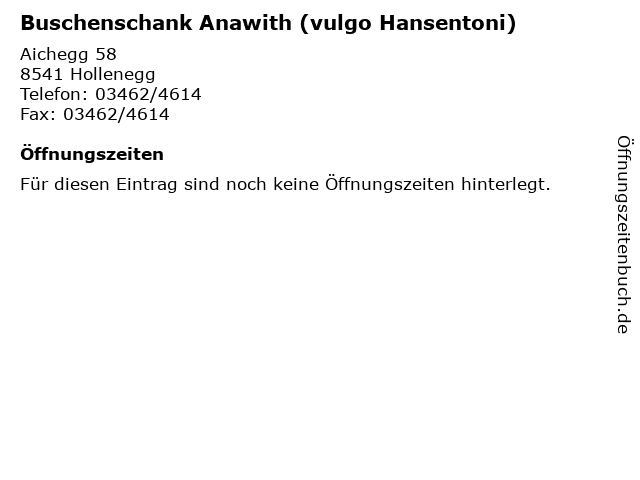| Buschenschank Anawith (vulgo Hansentoni) anrufen | |