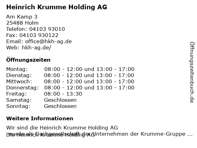 | Öffnungszeiten Heinrich Krumme Holding AG in Holm anzeigen | |