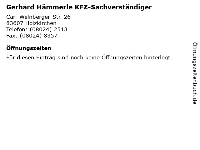 Öffnungszeiten Gerhard Hämmerle KFZ-Sachverständiger in Holzkirchen anzeigen