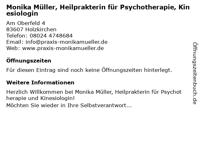 | Monika Müller, Heilprakterin für Psychotherapie, Kinesiologin anrufen | |