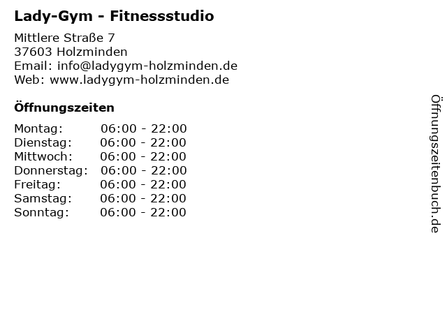 | Öffnungszeiten Lady-Gym - Fitnessstudio in Holzminden anzeigen | |