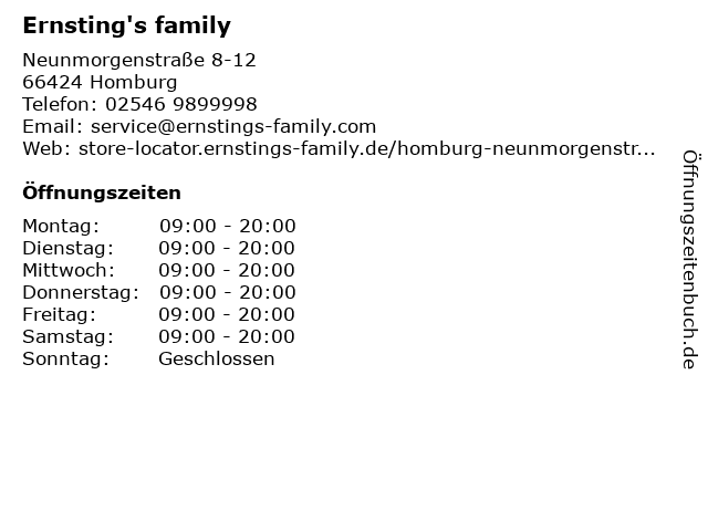 | Öffnungszeiten Ernsting's family in Homburg anzeigen | |