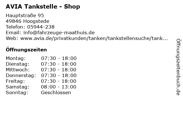 | Öffnungszeiten AVIA Tankstelle - Shop in Hoogstede anzeigen | |