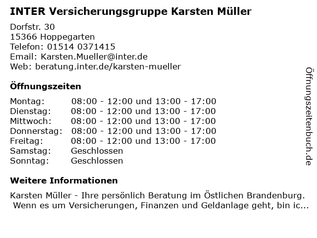 1 Karsten Kiwitz Andreas Horn Baumontage (Entfernung: 1,43 km) Straße des Friedens 48 b, 15366 Hoppegarten 5 6 Karsten Förster Handelsvertretung (Entfernung: 12,88 km) Mittelstr. 107, 15345 Petershagen/Eggersdorf |
