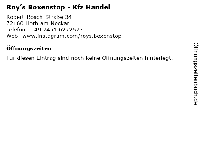 | Roy’s Boxenstop - Kfz Handel anrufen | |