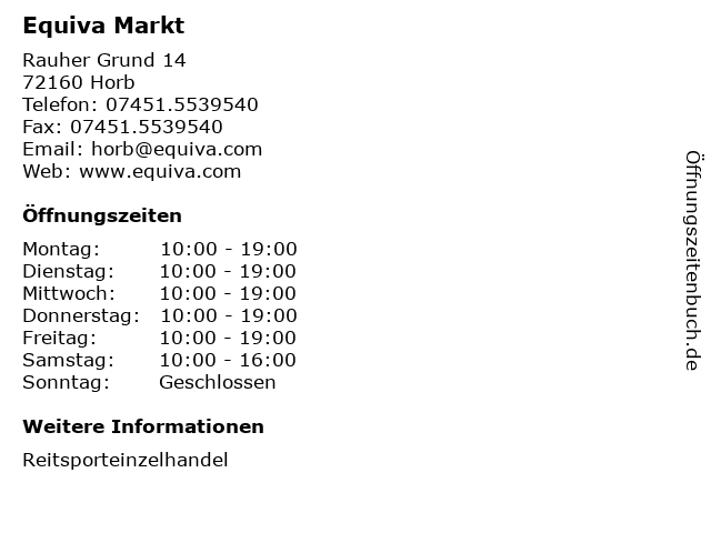 | Öffnungszeiten Equiva Markt in Horb anzeigen | |