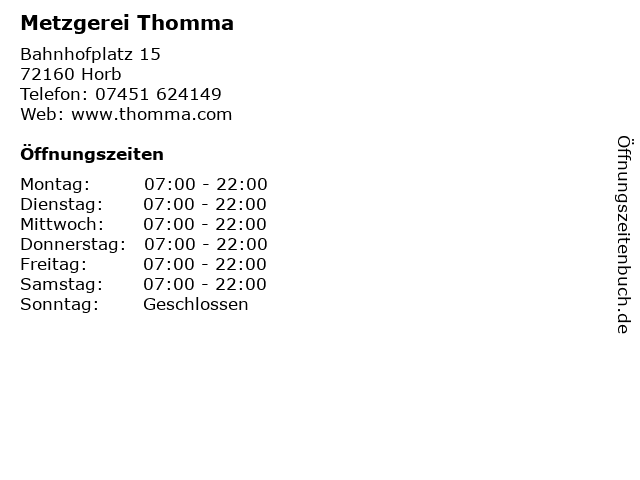 | Öffnungszeiten Metzgerei Thomma in Horb anzeigen | |