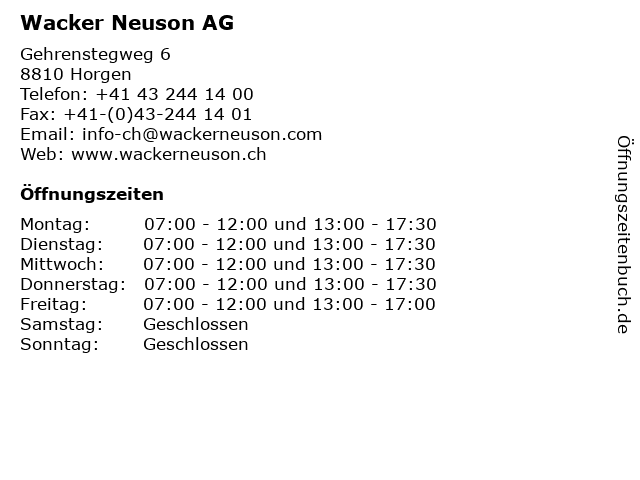 | Öffnungszeiten Wacker Neuson AG in Horgen anzeigen | |