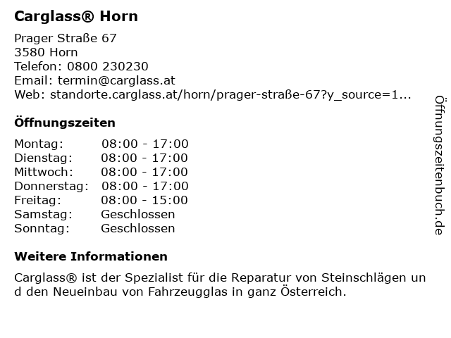 | Öffnungszeiten Carglass® Horn in Horn anzeigen | |