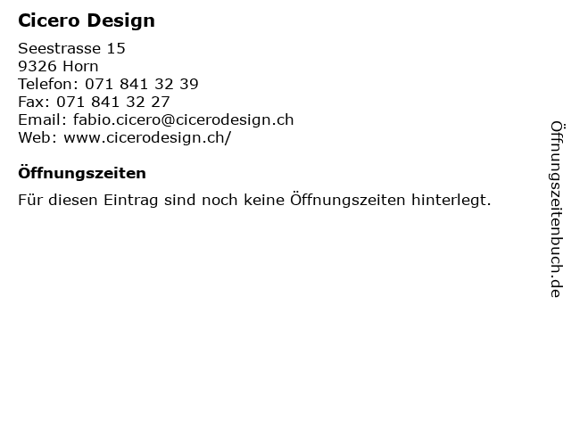 | Öffnungszeiten Cicero Design in Horn anzeigen | |