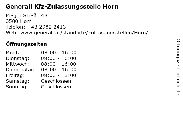 | Branchen & Suchbegriffe zu Generali Kfz-Zulassungsstelle Horn:generali, horn, kfz, zulassungsstelle |