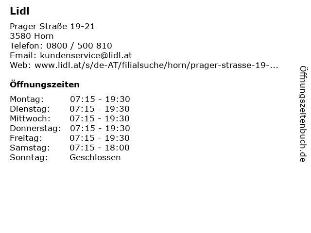 | Öffnungszeiten Lidl in Horn anzeigen | |