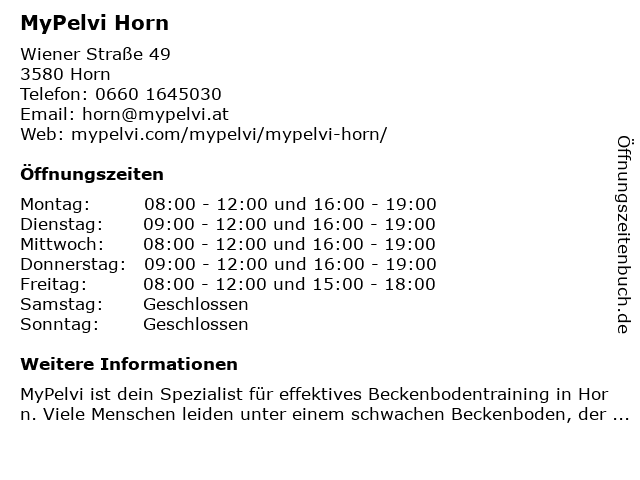 | Öffnungszeiten MyPelvi Horn in Horn anzeigen | |