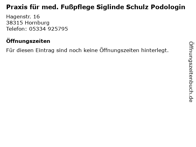 | Praxis für med. Fußpflege Siglinde Schulz Podologin anrufen | |