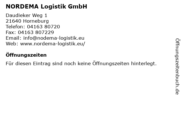 | Öffnungszeiten NORDEMA Logistik GmbH in Horneburg anzeigen | |