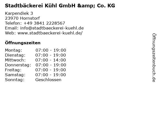 Öffnungszeiten Stadtbäckerei Kühl GmbH & Co. KG