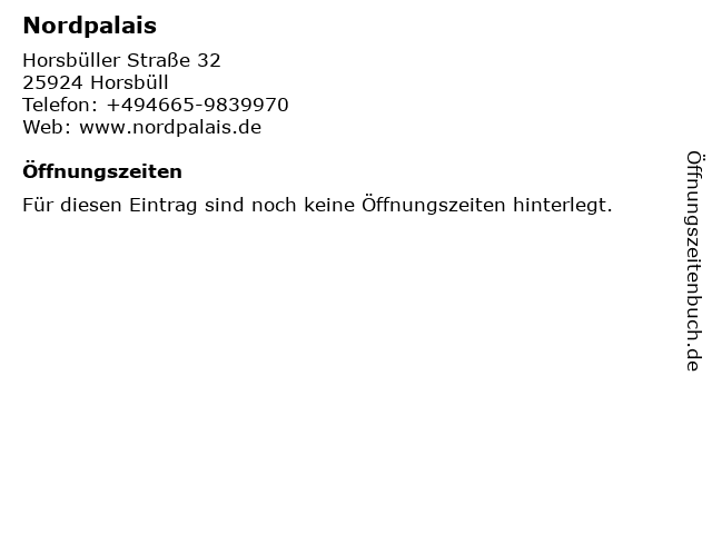 | Öffnungszeiten Nordpalais in Horsbüll anzeigen | |