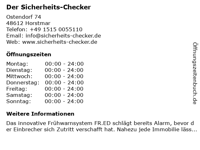 | Öffnungszeiten Der Sicherheits-Checker in Horstmar anzeigen | |