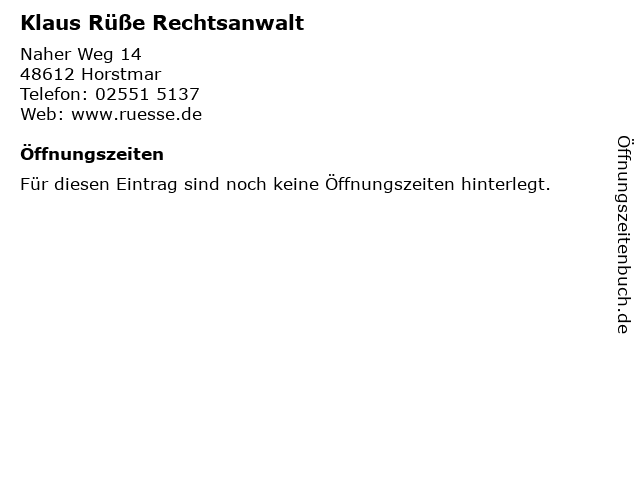 | Öffnungszeiten Klaus Rüße Rechtsanwalt in Horstmar anzeigen | |