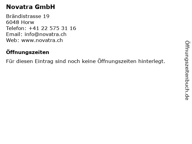 | Öffnungszeiten Novatra GmbH in Horw anzeigen | |
