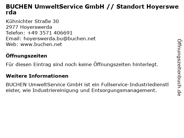 | BUCHEN UmweltService GmbH // Standort Hoyerswerda anrufen | |
