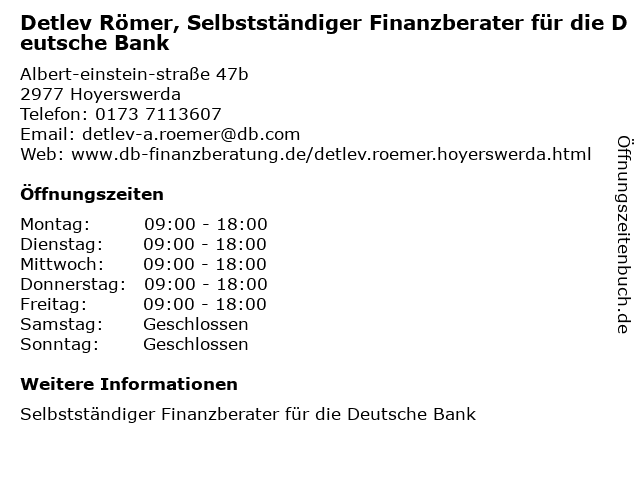 Branchen & Suchbegriffe zu Detlev Römer, Selbstständiger Finanzberater für die Deutsche Bank:bank, detlev, deutsche, finanzberater, römer, selbstständiger |