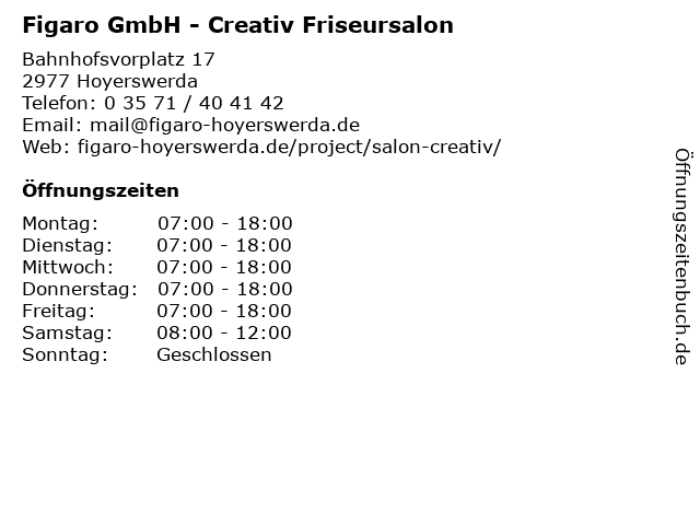 1 Figaro Haar & Kosmetik GmbH Salon "Lady" Süd (Entfernung: 0,36 km) Dresdener Str. 2, 02977 Hoyerswerda 3 Coiffure Optimal Gesellschaft für Haar- und Körperpflege mbH Creativ (Entfernung: 0,79 km) Am Kamenzerbogen 1, 02977 Hoyerswerda 5 Figaro GmbH Haar und Kosmetik, Friseur-Treff im Hochhaus (Entfernung: 3,04 km) Lipezker Platz 2, 02977 Hoyerswerda 6 |