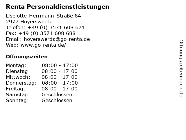 1 ACCURAT Gesellschaft für Personaldienstleistungen mbH (Entfernung: 1,57 km) Dietrich-Bonhoeffer-Straße 9, 02977 Hoyerswerda 5 IC TEAM Personaldienste GmbH - Geschäftsstelle Hoyerswerda (Entfernung: 2,18 km) Industriegelände Str. E1, 02977 Hoyerswerda 6 |