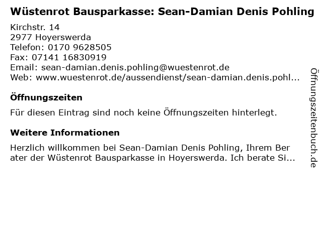 | Wüstenrot Bausparkasse: Sean-Damian Denis Pohling anrufen | |