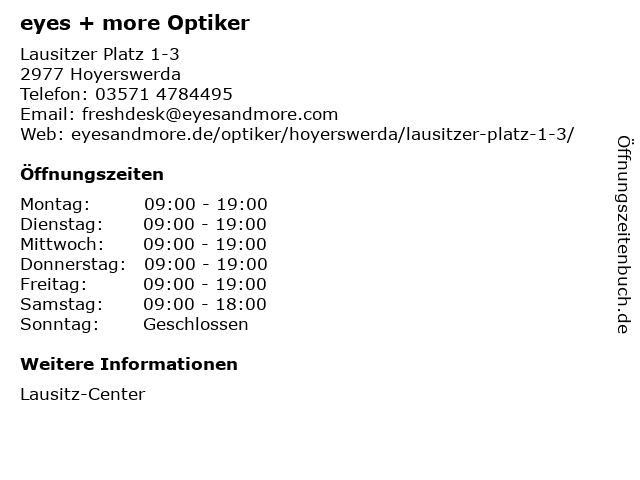 | Öffnungszeiten eyes + more Optiker in Hoyerswerda anzeigen | |