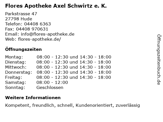 Branchen & Suchbegriffe zu Flores Apotheke Axel Schwirtz e. K.:apotheke, axel, e., flores, k., schwirtz |
