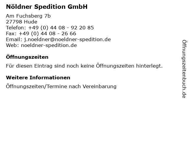 | Öffnungszeiten Nöldner Spedition GmbH in Hude anzeigen | |