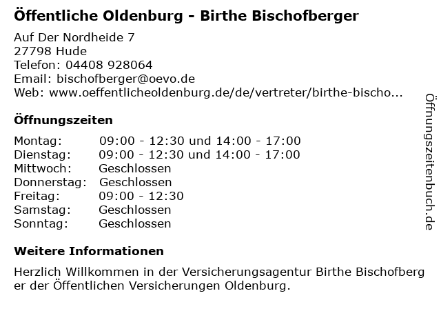 Branchen & Suchbegriffe zu Öffentliche Oldenburg - Birthe Bischofberger:birthe, bischofberger, öffentliche |
