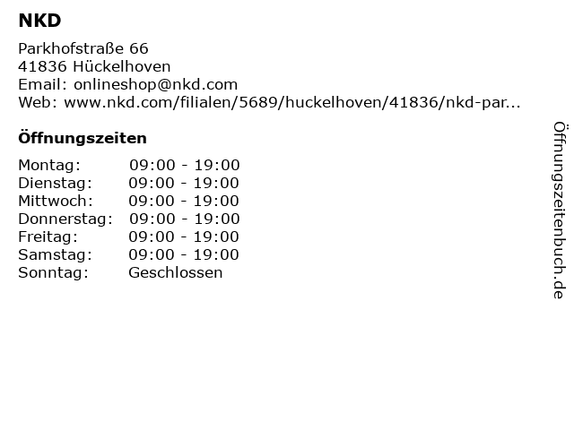 | Öffnungszeiten NKD in Hückelhoven anzeigen | |