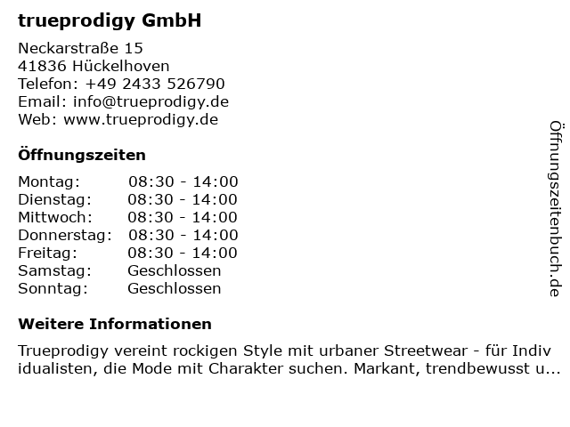 | Öffnungszeiten trueprodigy GmbH in Hückelhoven anzeigen | |