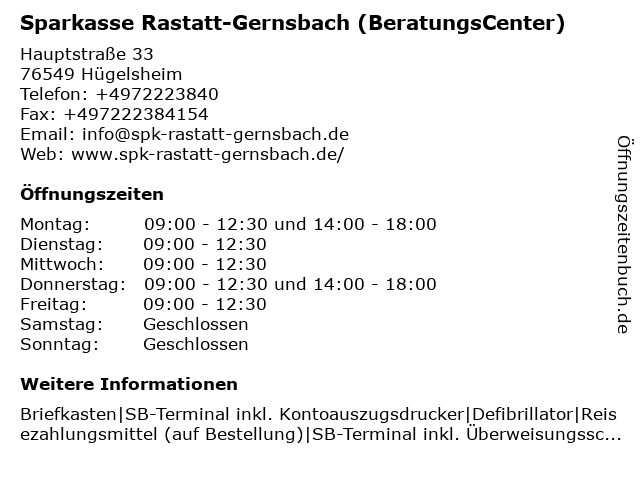 Branchen & Suchbegriffe zu Sparkasse Rastatt-Gernsbach (SB-Geschäftsstelle):geschäftsstelle, sb, sparkasse |