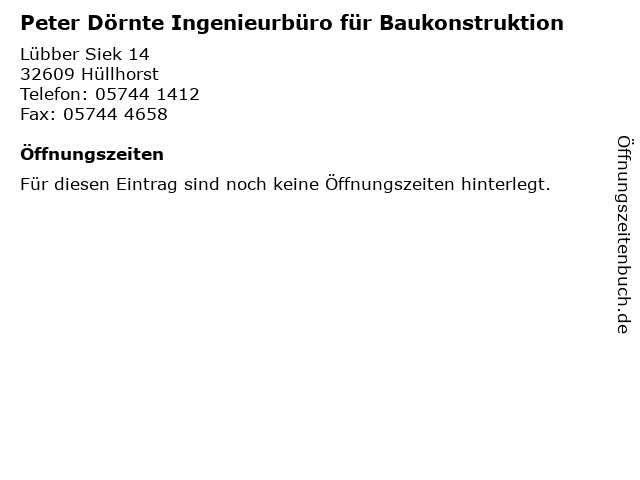 | Peter Dörnte Ingenieurbüro für Baukonstruktion anrufen | |