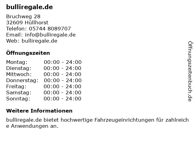 | Öffnungszeiten bulliregale.de in Hüllhorst anzeigen | |