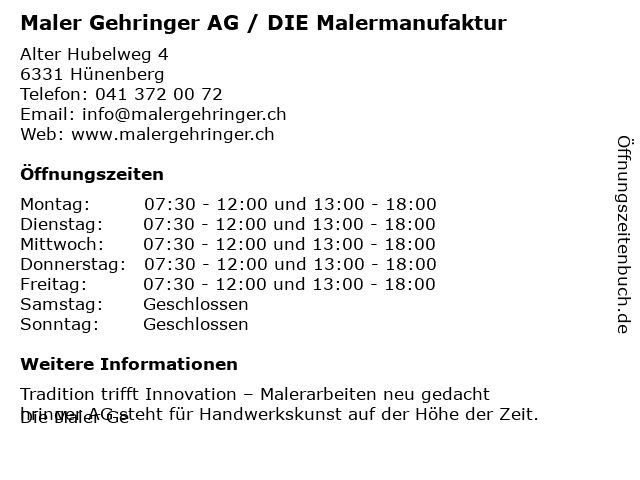 Branchen & Suchbegriffe zu Maler Gehringer AG / DIE Malermanufaktur:gehringer, maler, malermanufaktur, tapetengeschäft, tapezierer, umbauarbeiten |