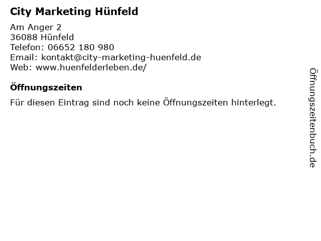 | Öffnungszeiten City Marketing Hünfeld in Hünfeld anzeigen | |