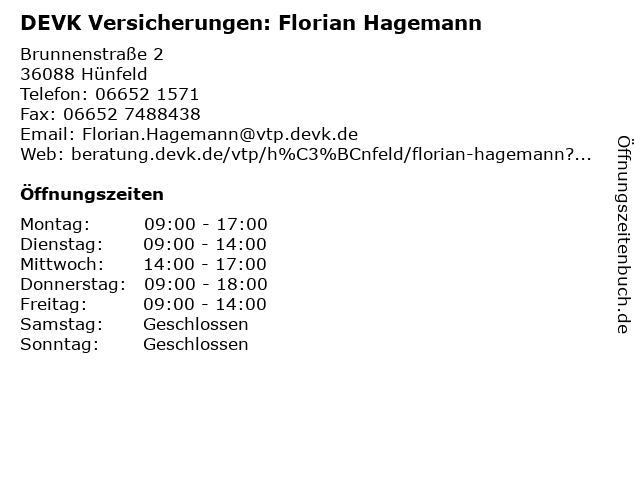 3 DEVK Versicherung: Florian Hagemann (Berater*in ausgeschieden) (Entfernung: 13,78 km) Jürgen-fuchs-str. 15, 36419 Geisa 4 DEVK Versicherung Winfried Wehner Generalvertreter (Entfernung: 14,35 km) Heinrichstraße 20, 36037 Fulda 5 DEVK Versicherungen: Mohammad Osman (Berater*in ausgeschieden) (Entfernung: 14,65 km) Langebrückenstr. 33, 36037 Fulda 6 |
