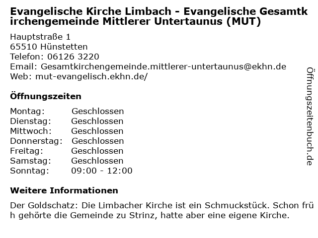 Branchen & Suchbegriffe zu Evangelische Kirche Limbach - Evangelische Gesamtkirchengemeinde Mittlerer Untertaunus (MUT):evangelische, gesamtkirchengemeinde, kirche, mittlerer, mut, untertaunus |