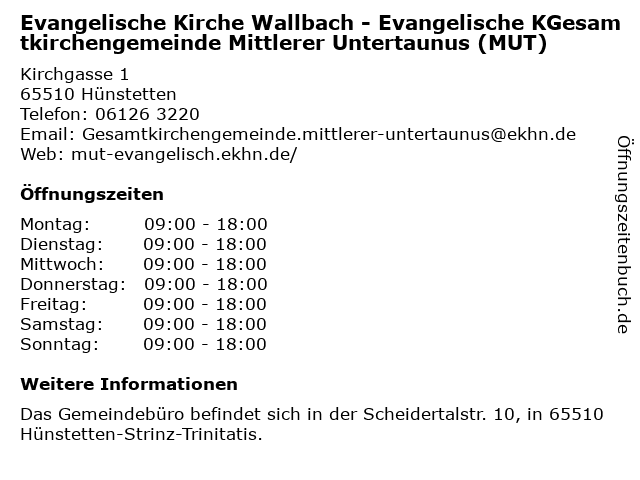 Branchen & Suchbegriffe zu Evangelische Kirche Wallbach - Evangelische KGesamtkirchengemeinde Mittlerer Untertaunus (MUT):evangelische, kgesamtkirchengemeinde, kirche, mittlerer, mut, untertaunus, wallbach |