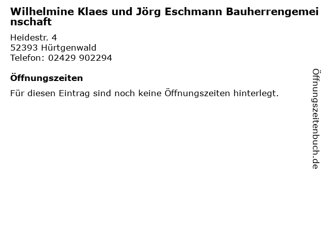 | Wilhelmine Klaes und Jörg Eschmann Bauherrengemeinschaft anrufen | |