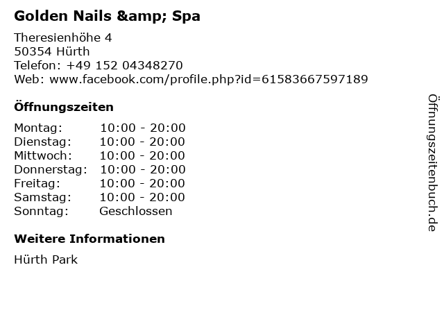 | Adresse Golden Nails & Spa in Hürth anzeigen |