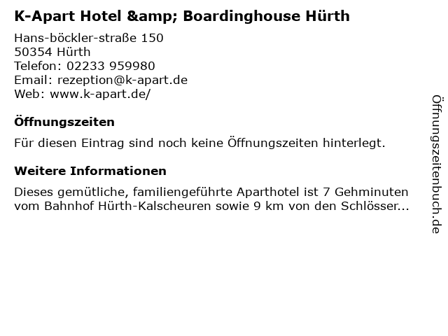 | K-Apart Hotel & Boardinghouse Hürth anrufen | |