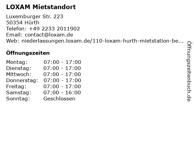| Öffnungszeiten LOXAM Mietstandort in Hürth anzeigen | |
